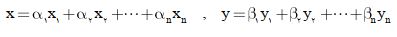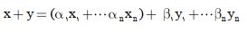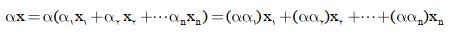 که در آن α1 ,α2 ,…,αn و β1 ,β2 ,…,βn اسکالرند و x1 ,x2 ,…,xn و y1 ,y2 ,…,yn بردارهایی در S باشند. پس: