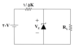 مثال) در مدار تنظیم کننده ولتاژ شکل زیر دیود زنر دارای